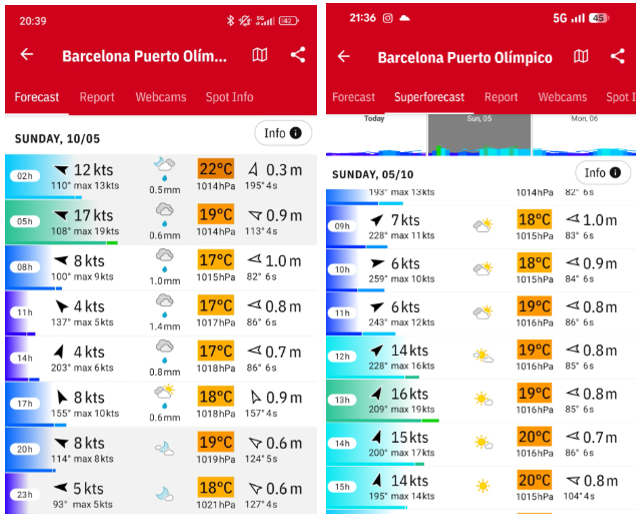 El dia es va aixecar gris i amb pinta de pluja. Tots els models pronosticaven un dia ratxejat, complicat i difícil de preveure. Cada model meteorològic deia una cosa diferent. Mentre el forecast del Windfinder preveia pluja i poc vent, el superforecast de la mateixa aplicació anunciava vents per sobre dels 12 nusos amb ratxes de gairebé 20. L’únic punt en què coincidien era que hi hauria onada…
