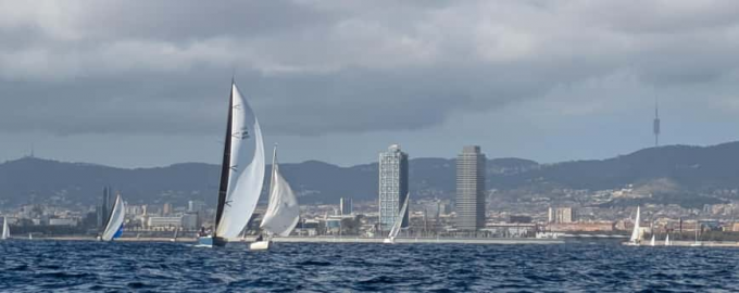Pocs minuts més tard, el vent va anar morint i la flota va quedar gairebé parada durant uns quinze minuts, fins que va entrar un vent una mica més calent entre migjorn i xaloc, que va girar el camp de regates. Fins a tal punt que es va veure la particular imatge d’alguna embarcació arribant a la boia de sobrevent amb l’espinaquer hissat.