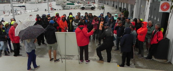 A la reunió de patrons ja va caure una mica d’aigua, en un dia gris que no va agafar per sorpresa els participants, ja que gairebé la meitat es van presentar a menjar els croissants amb vestit d’aigua i botes. Durant la reunió, el comitè ja va comentar que, donada la inestabilitat del dia i el fet que som una regata social amb pocs recursos, no s’anul·laria o cancel·laria la prova encara que el vent roles considerablement.
