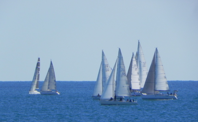 La flota va haver d’interpretar un camp de regates que es revelava d’una complexitat fascinant. La línia de sortida, generosa en llargària i ben orientada, va permetre una arrencada neta en la que les decisions tàctiques es van començar a prendre pes des del primer instant. Finalment, els que van optar per sortir pel comitè es van veure beneficiats en l’aparent loteria de les encalmades ja que al costat dret del camp de regates hi havia una mica més de pressió. El vent fluix i els corrents de fons van fer que el primer tram fos una cursa d’intel·ligència, en la que cada vaixell buscava el costat més afavorit, intentant aprofitar qualsevol “pressió”, qualsevol inèrcia o canvi de color a la boca del Besòs. Enlluernats per algun role més consistent, alguns vaixells van provar sort amb el gennaker, però van ser pocs els que el van aguantar més de 5 minuts. Com sempre, van haver-hi creuaments ajustats i duels directes per agafar l’interior a la boia de Besòs. En el camí, s’havien format dos grups grans la distància entre els quals es va eixamplar progressivament; semblava ben bé que Èol tingués preferits.